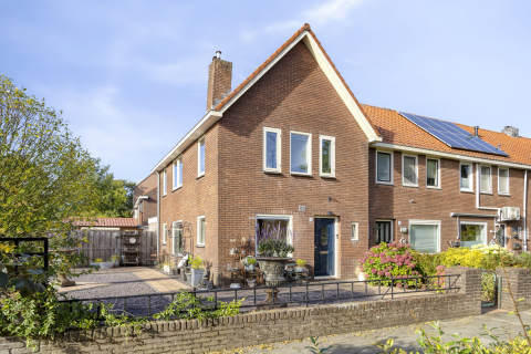 In rustige en kindvriendelijke straat gelegen hoekwoning met ruime oprit, zonnige tuin op het zuiden en achterom. De woning beschikt over een aan de achterzijde bereikbare garage en veranda.